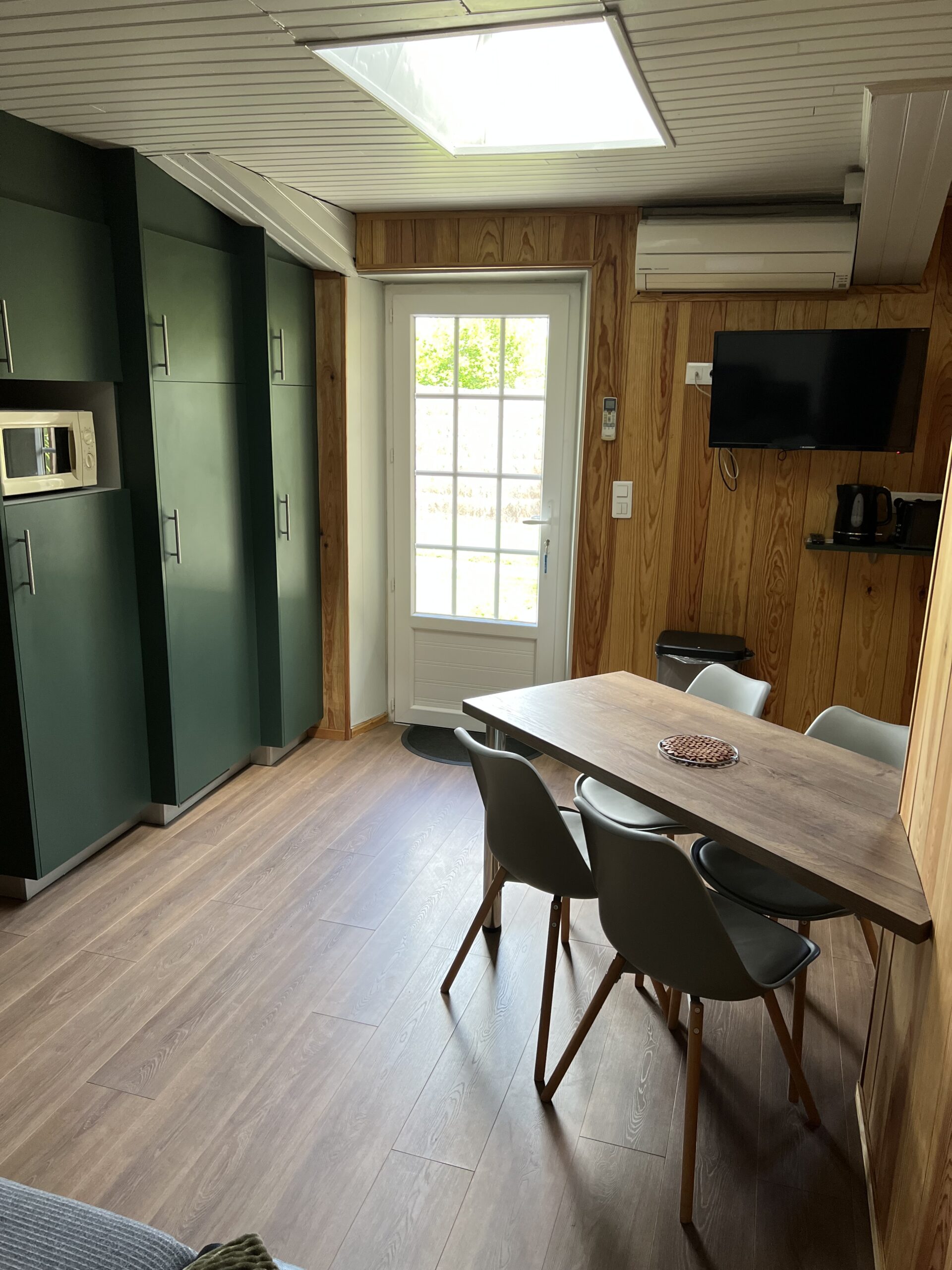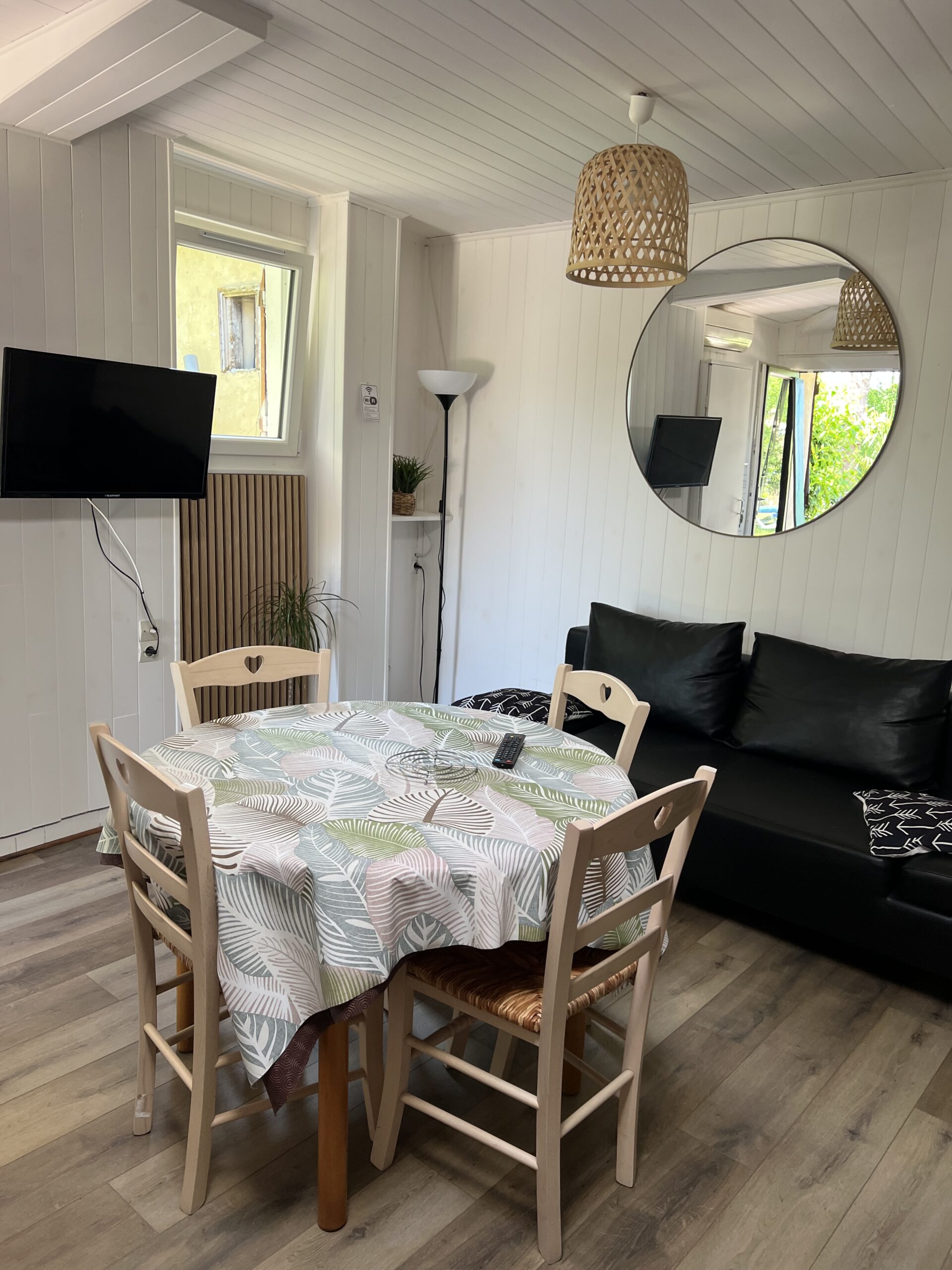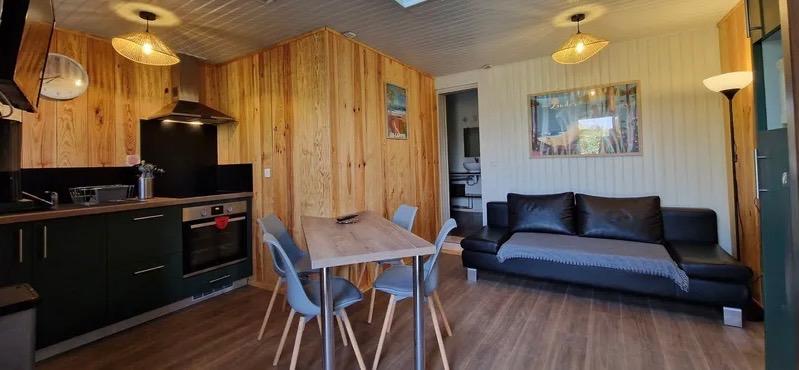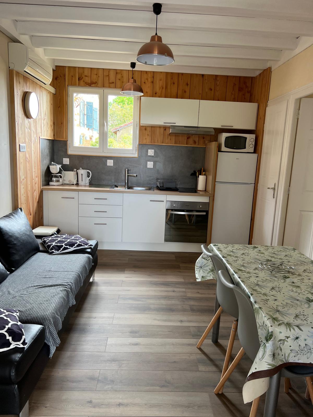 Détendez-vous dans un salon spacieux, équipé d’un canapé convertible (2 personnes), d’une télévision TNT, du Wi-Fi gratuit. Une table et 4 chaises complètent cet espace de vie agréable.