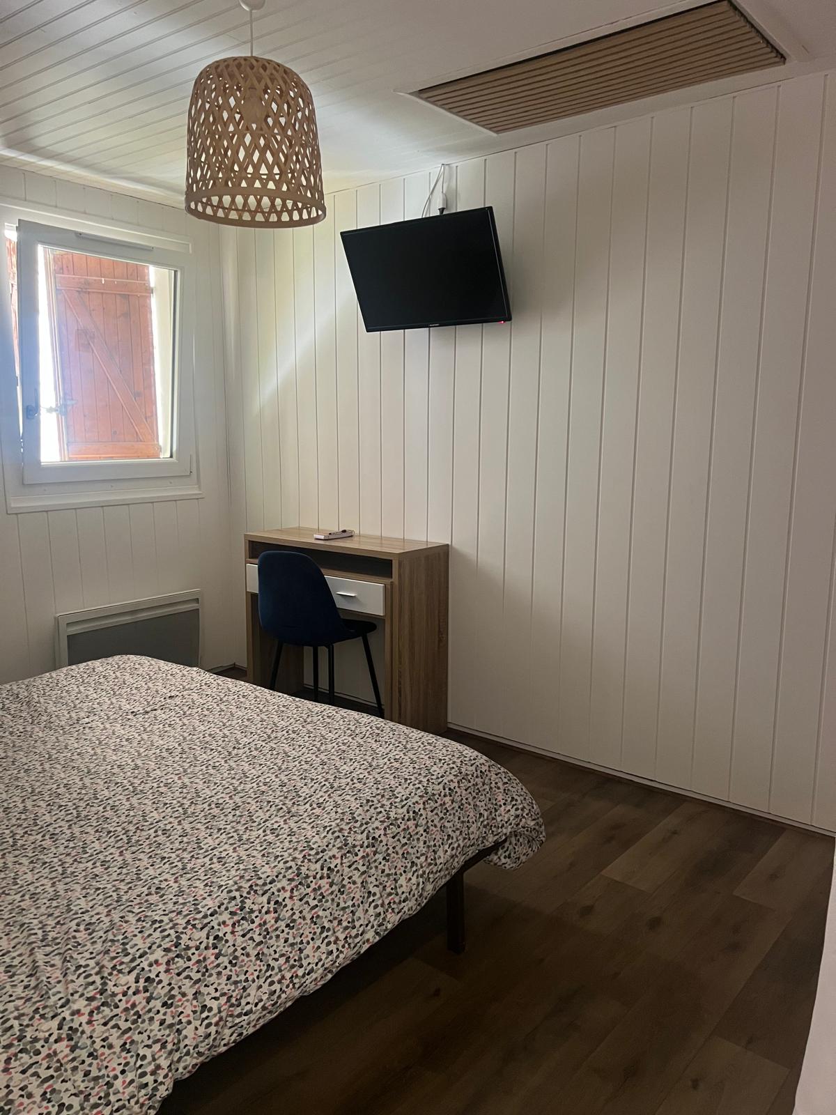 Vous y trouverez également tables, TV et lampes de chevet, armoire, couettes, oreillers, traversin et draps fournis.